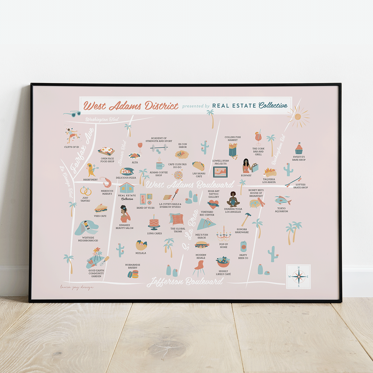 Real Estate Collective needed an illustrated map of the West Adams neighborhood to encourage people to visit the area, see the thriving community and be inspired to buy property in the area.